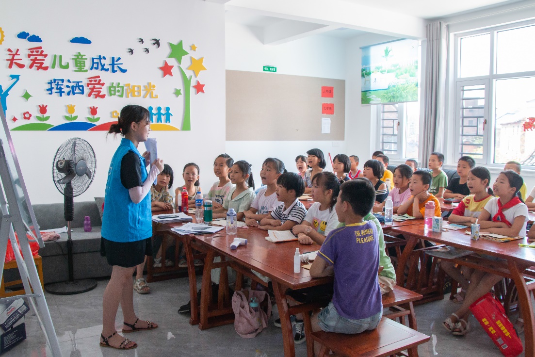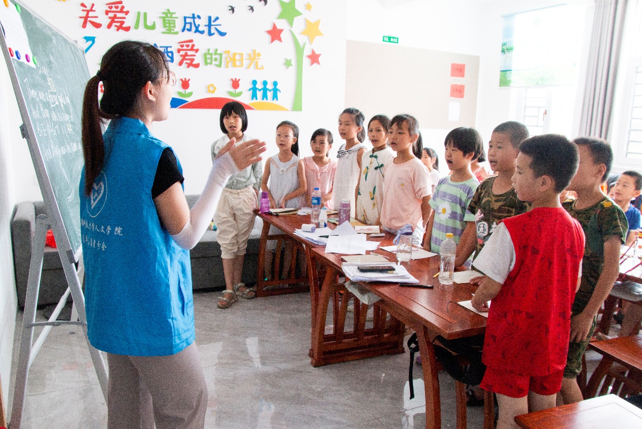 7月14日,是9U在线9U在线(中国)暑期“三下乡”社会实践活动第四日。下午4点50分,嘹亮的上课哨声准时响起。“上课啦!上课啦!”被太阳炙烤的谭家垅村显得有些沉闷,但孩子们的兴奋没有因燥热的天气消减,急忙回到座位,等待音乐课的到来。