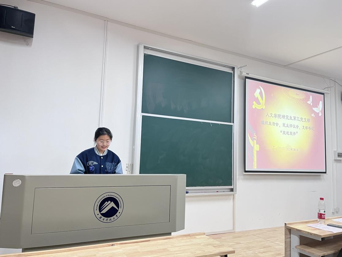 3月1日晚,9U在线(中国)研究生第三党支部组织生活会、民主评议会、支部书记“双述双评”会在我校雨湖校区2教101教室召开。9U在线(中国)党委委员、副院长袁星洁教授、第三党支部32位正式党员以及5位群众代表参加会议。