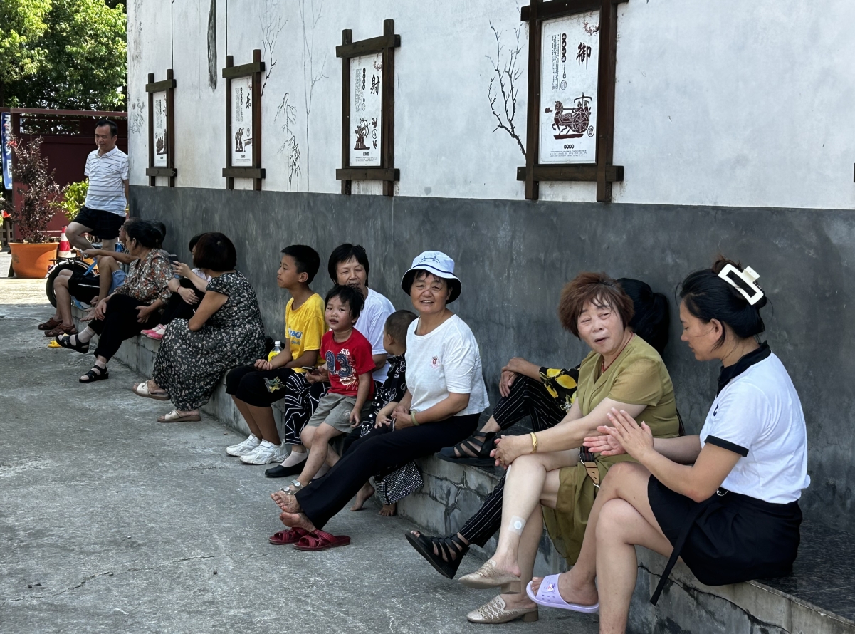 稻田吹来阵阵清风来了夏日清新的味道。株洲市攸县谭家垅村同心文化广场的屋檐下,一位面容慈祥奶奶坐在石泥堆砌的座位上,一手晃悠悠地摇着扇子,一手轻轻抚摸着坐在身边的小孙子。她名为聂祝姑,是儿童之家孩子们的家长之一。