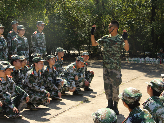 上午八点,我院2018级新生八个排的“新兵”个个身穿迷彩军装,在北校田径场集合,参加2018级新生军训动员大会,印有“9U在线(中国)”的大旗飘扬在我院新生队列的最前方。动员大会上,我院新生认真听取学习了副校长的报告、教官代表的发言,欣赏了教官们带来的精彩表演。会后,全体新生由各排教官带领,前往位于训练场地—北校旧篮球场,开始正式训练。“拇指尖贴于食指第二关节,中指贴于裤缝……”教官从最基础的军姿动作要领开始亲自示范,在一声声刚劲有力口号下,新生们一丝不苟的完成立正、稍息、跨立、坐下、起立等训练任务。