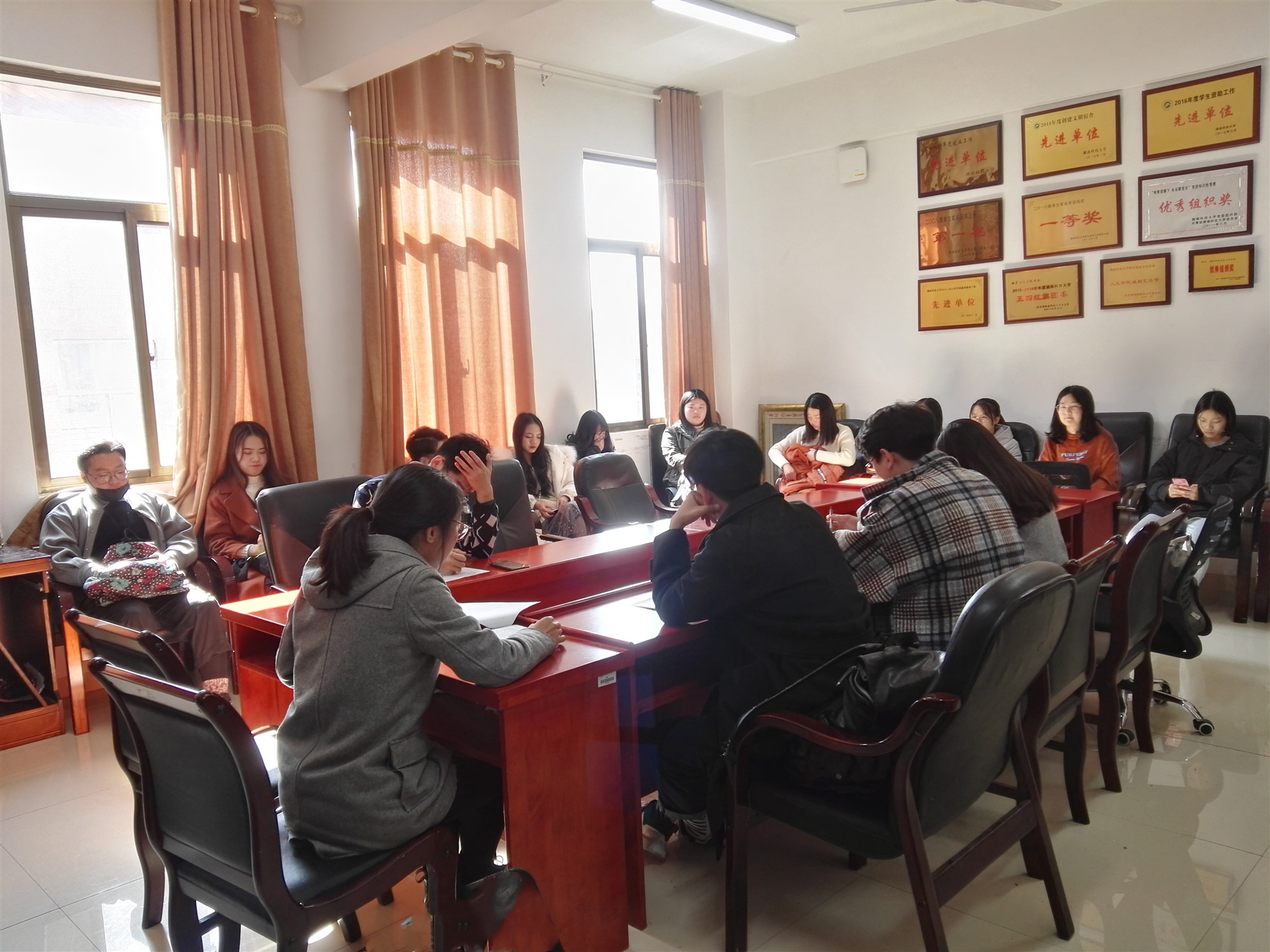 室外寒风刺骨,室内暖意融融。12月18日中午,我院主席团、部长工作例会在立言楼b410召开。学工办王嘉敏老师出席并主持会议。