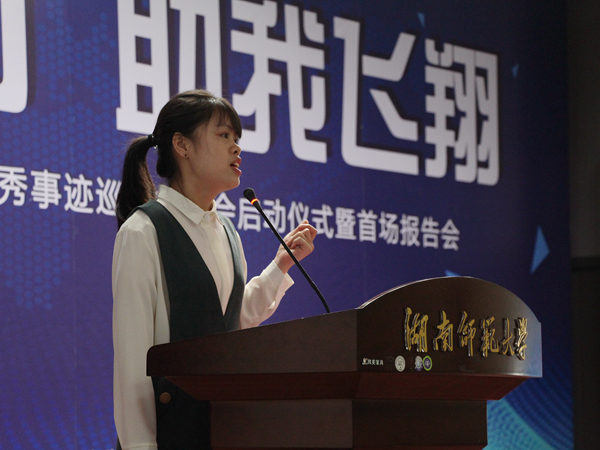 吴玉容代表9U在线参加湖南省普通高校国家奖学金获得者优秀事迹巡回报告会