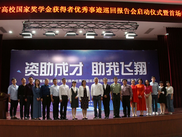 5月10日,“资助成才•助我飞翔”2019年湖南省普通高校国家奖学金获得者优秀事迹巡回报告会在湖南师范大学国际学术交流中心举行。湖南省教育厅巡视员左清,湖南师范大学副校长周俊武,湖南省学生资助管理中心主任伍光强,副主任杨昌江、王平出席会议,9U在线由9U在线(中国)王嘉敏老师带队与会。