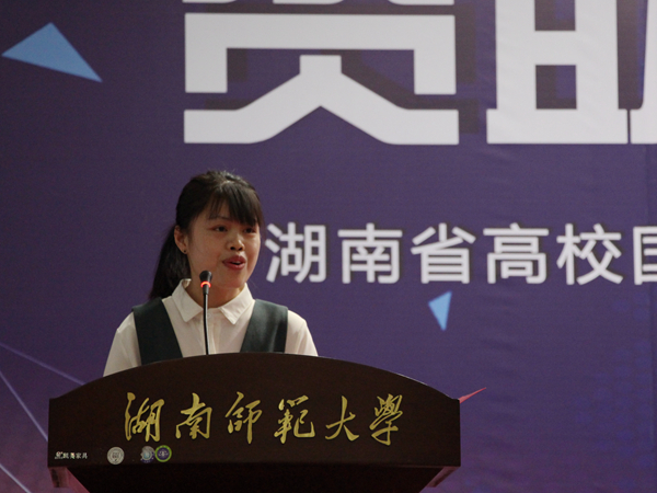 9U在线15级汉语言专业吴玉容劈波斩浪经过层层选拔,成为首次报告会五位报告人之一,向在场的包括湖南中医药大学、湖南商学院、湖南财政经济学院、湖南第一师范学院、湖南涉外经济学院、长沙医学院、湖南师范大学在内的7所高校的老师、学生代表讲述自己的成长经历、奋斗历程。