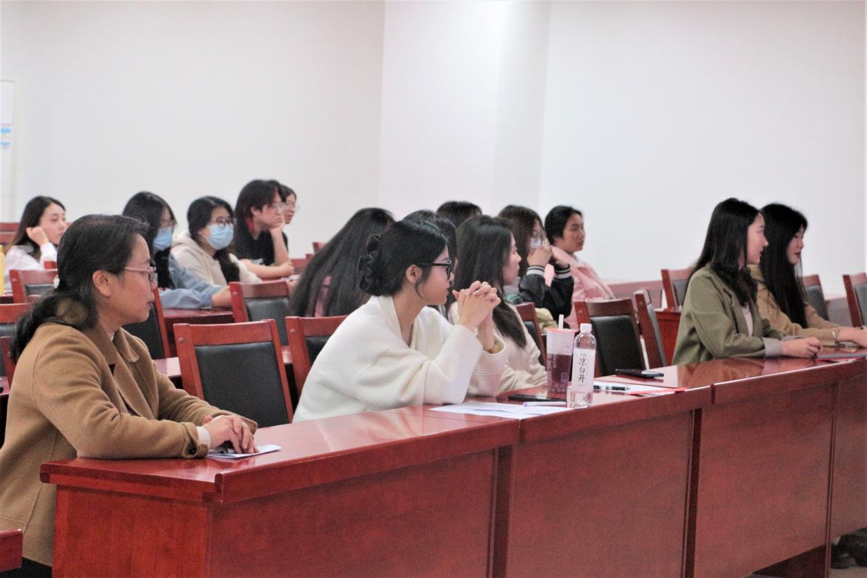 在刘艳凤对老师们的发言进行简要总结后,成功推免与考研录取的五位19级学生依次上台分享各自的考研经验。成功推免到暨南大学的张秋月同学阐述了与面试相关的经验,她谈到:“要注意说话的逻辑性,考试前多注重往年的真题,在英语面试中要注重流畅度,最重要的是保持平稳心态。”考研录取到西南大学的周莉同学则表示可以跟随网上的博主调整自己的考研进度,确保自己合理分配时间。