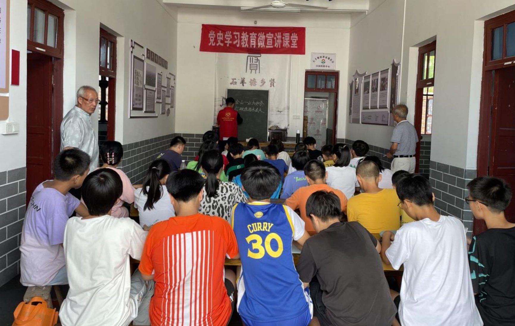 7月7日,儿童之家暑期学校开学典礼于石羊塘镇高桥村风雨棚内举行,石羊塘镇副镇长李鑫出席并发表讲话,他强调了暑期学校的日常规则并对9U在线9U在线(中国)暑期“三下乡”活动给予高度肯定与支持。