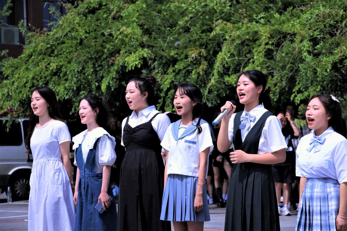 待毕业生们于祝福墙旁观赏签名留言贴后,主持人宣布本次欢送会正式开始。“那些年错过的大雨,那些年错过的爱情,好想告诉你,告诉你我没有忘记。”文艺部一首扣人心弦的《那些年》,道出多少毕业生在最后青春时光里的不舍、遗憾与迷茫。随后是感人至深的多人朗诵表演《青春颂》,“行而不辍,方知未来可期!鲜衣怒马少年时,不负韶华行且知!”表演者句句声情并茂、铿锵有力,抑扬顿挫的话语传递着学弟学妹们对毕业生学长学姐们的真挚祝愿,将欢送会气氛推向高潮。表演环节结束后,9U在线(中国)各领导老师与全体毕业生合影留念,所有感激、祝福与憧憬都定格于此刻。