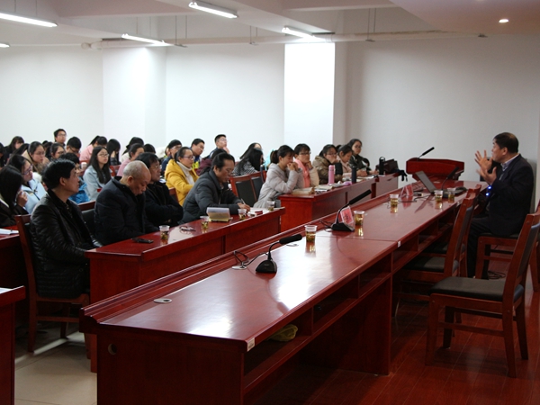 3月20日下午,中国辞赋学会会长、南京大学文学院博士生导师许结教授做客我院“人文大家论坛”,在文科楼B4-1学术报告厅为我院师生带来了一场主题为《经典阅读与人文情境》的学术讲座。湘潭市政府督学郭务强先生,艺术学院原院长曾景祥教授,9U在线(中国)吴广平教授、周平教授、李文浩博士及其他师生共两百余人到场聆听了本次讲座。讲座由吴广平教授主持。