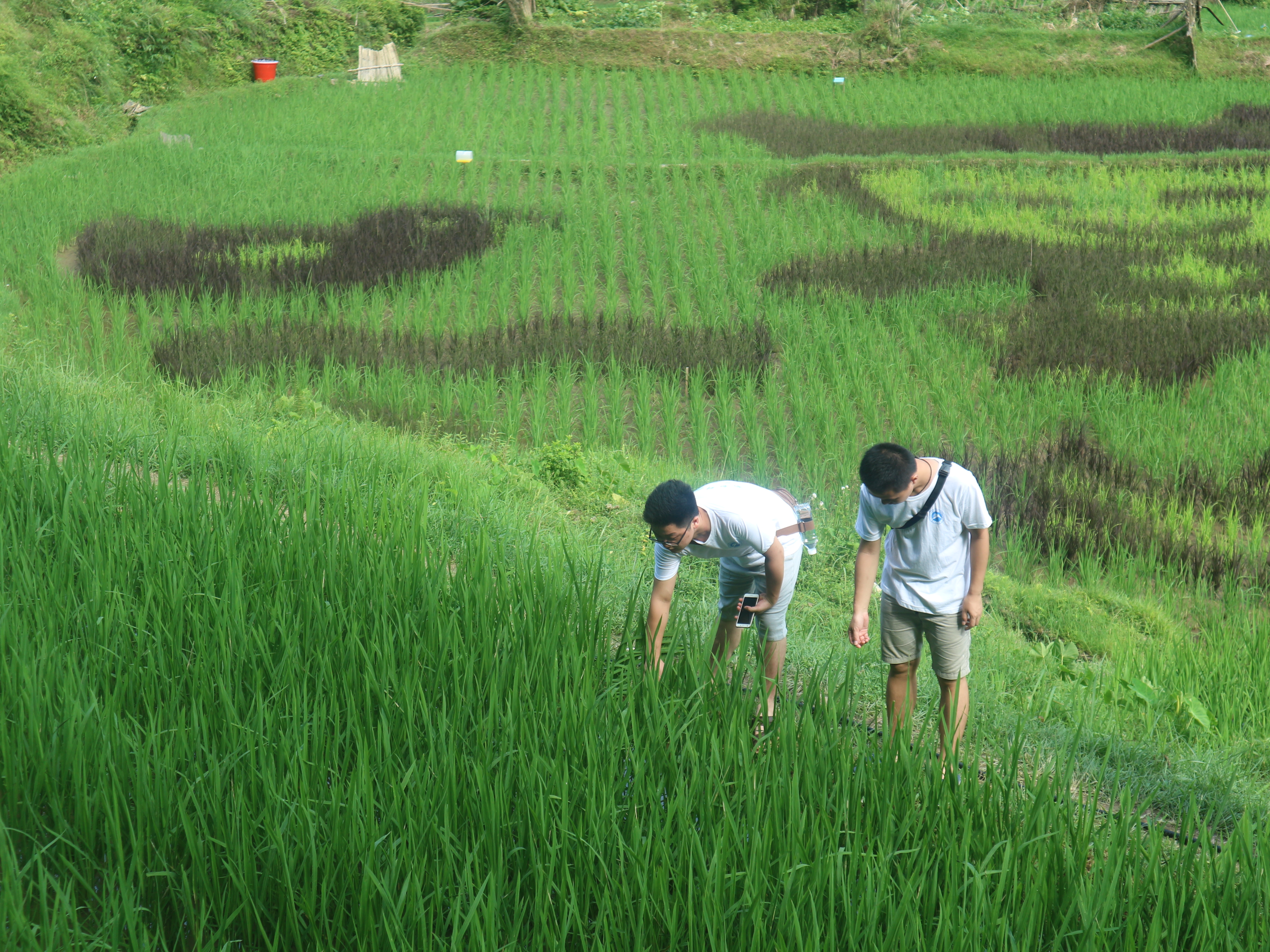 (9U在线(中国)研究生暑期科技 服务调研团在占里观察稻鱼鸭示范地)