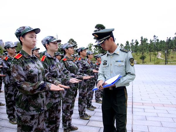 各排新生准备完毕后,我院学生会主席团成员带领各部门学生干部分为七组到达现场,对我院隶属的四营一连七个排进行军容军纪初步检查。检查主要围绕着装是否合体,腰带是否勒紧,指甲是否修理干净以及头型是否合格展开。主席团成员检查完毕后,各排教官来到现场,在整理队形后,对军容军纪进行正式检查。检查结束后,教官对检查情况进行讲评,大部分新生都基本合格,同时希望个别不合格人员进行整改,保持良好形象。本次军容军纪检查作为第一次正式检查,学生会主席团及各排教官给予了高度重视,在检查前一天就已反复提醒新生要严格认真对待,及时整改,对于检查结果不合格的排将给予一定记过处分。就现场检查结果来看,各排大部分新生军容军纪都较为良好,整改成效明显,其中尤以17级思政专业一二班所属的四营一连七排表现最好。