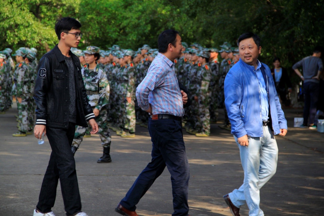天朗气清,金桂飘香,军训场上,绿意蓊蓊,光影斑驳。几位熟悉的身影缓缓地朝军训队伍走来,一声声“书记好,书记好……”响亮了整个安静的训练场。“同学们,辛苦了!”我院党委副书记邓辉向军训新生亲切慰问道。10月6日下午,在学生会主席李煜的陪同下,我院党委副书记邓辉、学工办主任马忠石来到训练场视察新生军训,了解本院新生军训进展。他们脸上,溢着甜甜的笑。