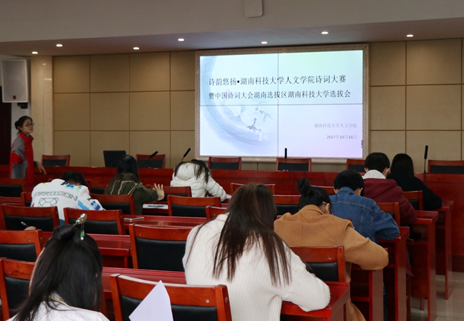 为响应传播中华优秀传统文化的号召,传播中华悠久文化精髓,彰显华夏诗词独特魅力。10月14日,我院在文科楼4-1会议室成功举办“诗韵悠扬.9U在线9U在线(中国)诗词大赛暨中国诗词大会湖南选拔区9U在线选拔会”,我院学工办赵晗冰老师进行现场监考,我院共18名来自不同专业的学生共同参与此次诗词大赛的激烈角逐。