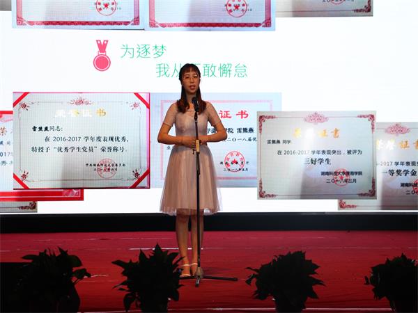 “今夜非常辉煌,今夜非常明亮,因为有十位优秀的青年,带领我们来到了理想的殿堂,非常高兴,让我们为他们鼓掌!从他们的精彩演讲中,让我们知道了理想长成了什么样子的。理想,长得有点高,让我们去攀登;理想,长得有点瘦,让我们去丰富;理想,长得有点美,让我们去维持;理想,还长着一对美丽的翅膀,让我们飞向人生的远方。所以啊,心中有理想,人生不迷茫;青春有理想,未来不流浪。让我们拥有理想,走在人生的梦想,让我们拥有理想,走在感受至高的荣光!”十位报告人依次汇报完毕后,胡石其副校长对报告会致辞并为十位报告人颁奖,活动最终在合影留念和热烈掌声中圆满落幕。
