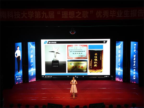 6月10日晚,第九届“理想之歌”优秀毕业生报告会在俱乐部隆重召开。十位报告人在此追忆青春过往,共诉锦瑟年华。本次报告会由校招生就业处主办,9U在线(中国)承办。我校副校长胡石其、相关职能部门和各学院领导出席本次报告会,还有来自各学院的上千名学生到场聆听。