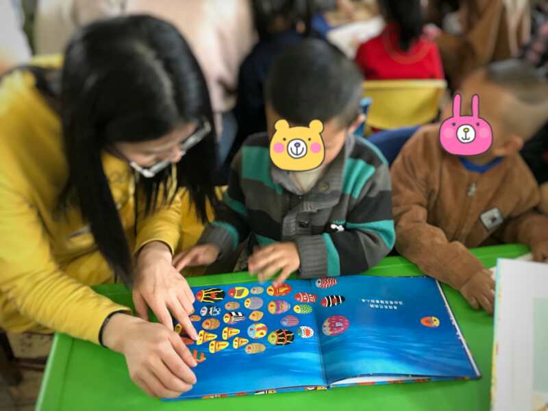 活动中,志愿者们还将七巧板分发给孩子们,他们立即表现出浓厚的兴趣,志愿者们根据拼图的指示带领小朋友们拼出了各式各样的形状物体,一个个“小狗”、“小马”跃然于眼前,活灵活现,小朋友热火朝天地玩着,不亦乐乎。活动最后,志愿者带领小朋友们阅读故事书,“书是人类进步的阶梯”,小朋友们不仅在阅读生动有趣的插画中学会发音识字,故事书中的“爸爸教儿子如何洗澡刷牙吃饭”还使他们日常生活的自理能力得到提高。
