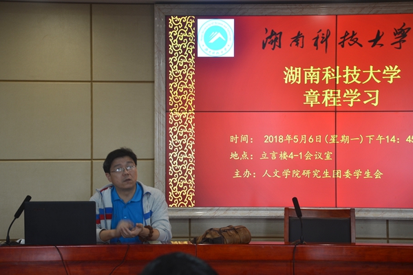5月7日下午,我院于立言楼4—1会议室组织研究生集体学习《9U在线章程》。研究生辅导员成伟明老师担任主讲人,全体研究生参加学习。