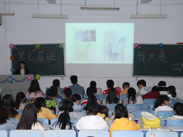 为激发学生的创造力与热情,提升学生文学素养,同时增强同学们的团结合作能力,使大学生活更加丰富,4月23日下午,我院在第八教学楼1-1教室举行第七届班刊设计大赛,学工办成伟明老师出席并参与点评,学生会主席林点、团委副书记刘文成、副主席靳江北、乐晋宁、李基豪、张榆东以及宣传部部长林雪担任评委,18级各班同学到场观看。