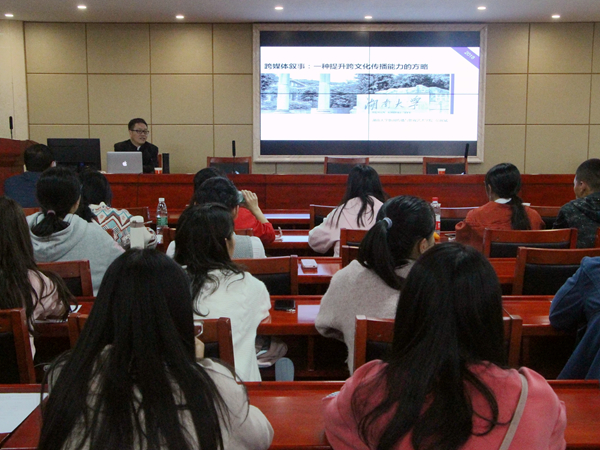 112日,湖南大学新闻传播与影视艺术学院院长彭祝斌教授应邀来院举办以“跨媒体叙事”为主题的学术讲座,陈功、黄洪珍、袁星洁、萧祥彪等老师及1718级新闻学专业学生到场聆听。
