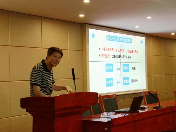 5月22日晚,武汉大学文学院博士生导师昌切教授应邀到我校讲学,于立言楼B4-1教室主讲了以《路遥:十字路口的人生抉择》为题的学术讲座。吴投文、胡志明、梁小娟等老师及17级汉语言文学专业各班同学到场聆听,讲座由吴投文教授主持。
