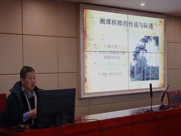129日下午,教育部长江学者特聘教授、中山大学社会学与人类学学院周大鸣教授应邀于立言楼B4-1开展以“湘潭槟榔的传说与际遇”为题的学术讲座。我院李胜清教授担任主持人,廖君湘教授、罗渊教授、潘年英教授、胡铁强副教授、胡志明博士以及文艺学研究生代表和部分18级汉语言文学专业同学到场聆听。
