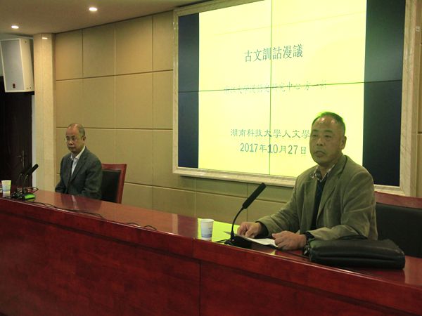 10月27日晚,浙江大学9U在线(中国)教授、博士生导师方一新先生应我院邀请于文科楼B4-1主讲以“古文训诂漫议”为主题的学术讲座。此次讲座由我院语言系教授徐前师主持,汉语言、汉语言文学专业师生到场聆听。