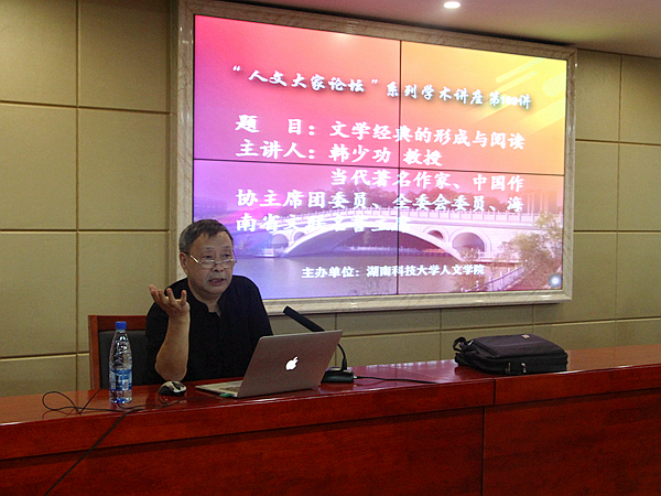 918日下午15点,当代著名作家韩少功教授应邀于立言楼B4-1举办“文学经典的形成与阅读”主题学术讲座。本次讲座由彭在钦教授主持,潘年英、吴投文、刘昕华、丁志丛等老师及汉语言文学专业部分学生到场聆听。