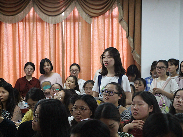在提问环节中,韩少功教授对“作为老师如何劝导学生利用碎片化时间阅读经典”,“对传统文化的看法”,“如何让更多读者看到自己的作品”等问题一一耐心解答。“问题不在于如何读书,而在于为什么读书,为了考试读书就糟糕啦”,“国学是资源,但不能照搬,民国也有国学热,如果那时候的社会问题不能用国学解决,那现在的问题凭什么能用国学解决呢”,“如何让更多读者看自己的书吗?我也好想知道”。韩教授的妙语连珠引起了场下阵阵欢笑与掌声。