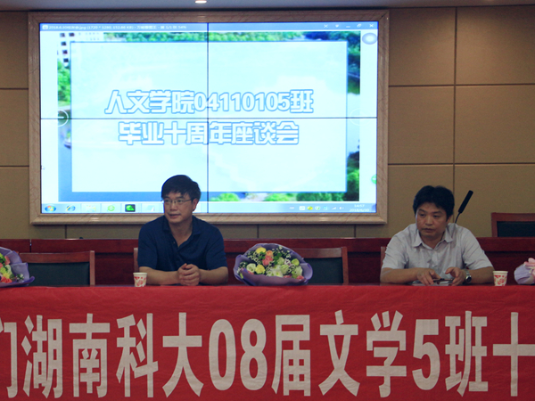 “十年之前,我不认识你,你不属于我,我们还是一样……”,伴随着《十年》的背景音乐,04级文学五班毕业十周年座谈会正式开始。本次座谈会于6月30日在立言楼B4-1举办,我院院长刘奇玉及部分老师参加了本次座谈会。