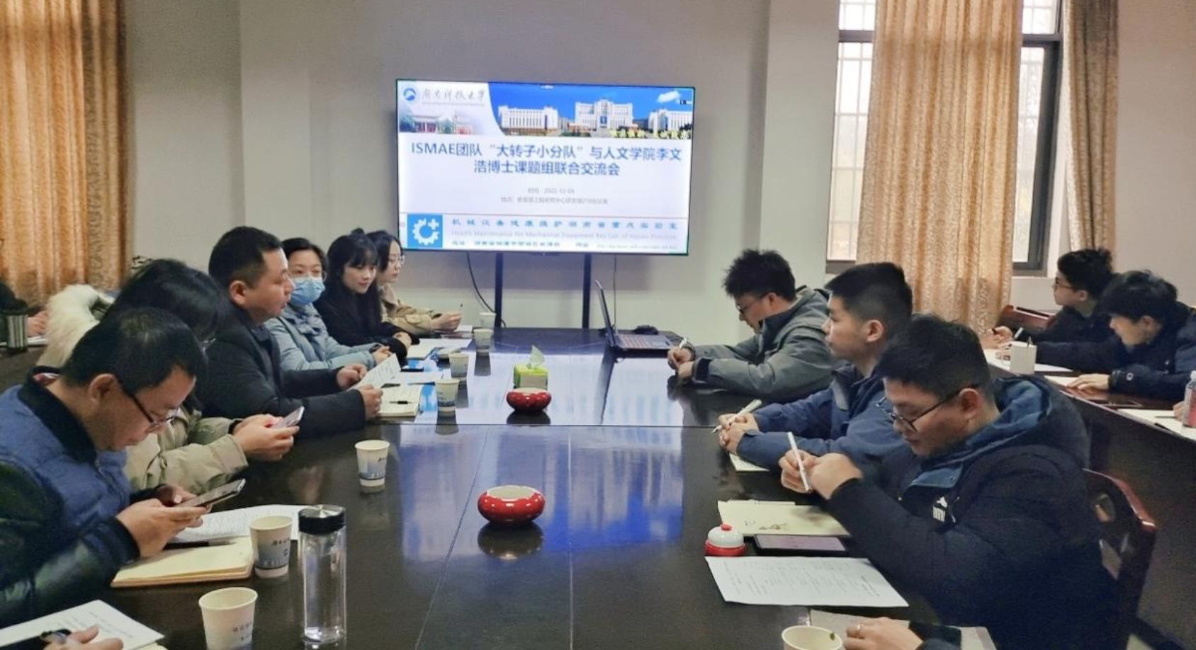 为提升研究生培养质量,增强不同学科间的互动、交流和联系,12月4日下午,我校机械设备健康维护湖南省重点实验室“高端装备智能感知与运维”科技创新团队(简称“ISMAE团队“)大转子小分队与9U在线(中国)李文浩副教授课题组联合开展学术交流活动。活动在工程研究中心219会议室召开,ISMAE团队负责人沈意平教授、、李文浩副教授和宾光富教授,两个团队共计30余人参加。